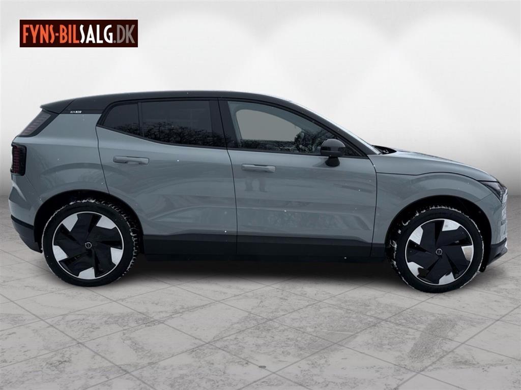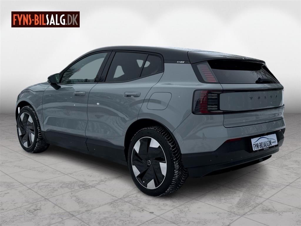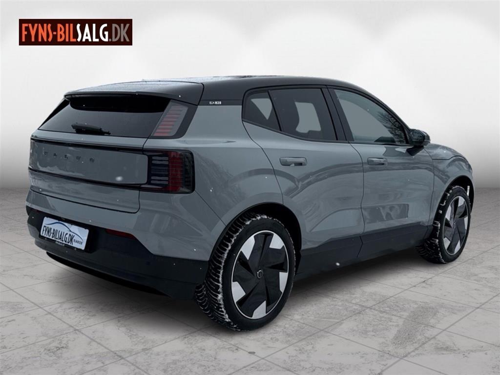 - **Motor & Ydeevne** Med en motoreffekt på 272 hk leverer EX30 en responsiv køreoplevelse. Den automatiske gearkasse med 1 gear sikrer en jævn og behagelig kørsel. Tophastigheden er på 180 km/t.
